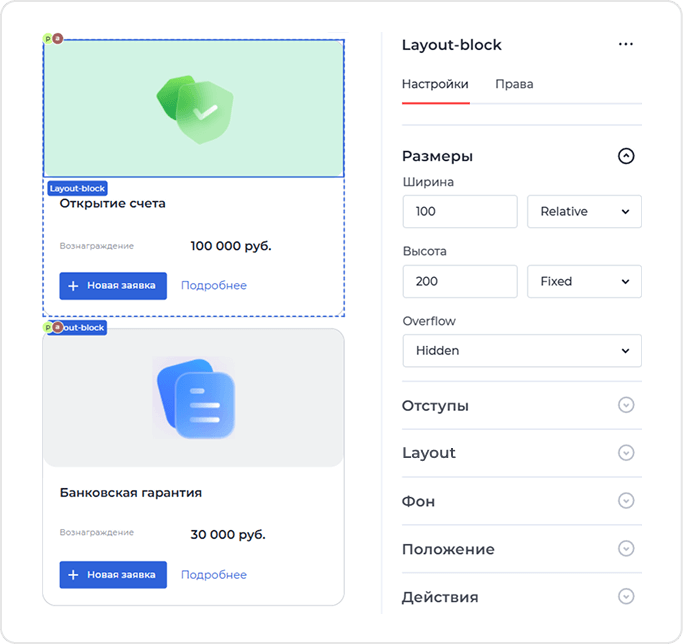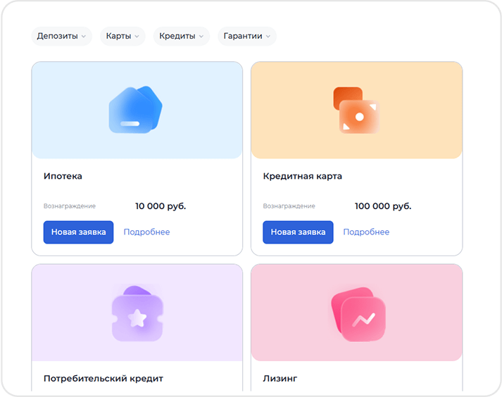 Кабинет агента собран на nocode-архитектуре, что позволяет банку самостоятельно изменять любую часть решения без ожидания вендора